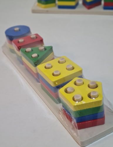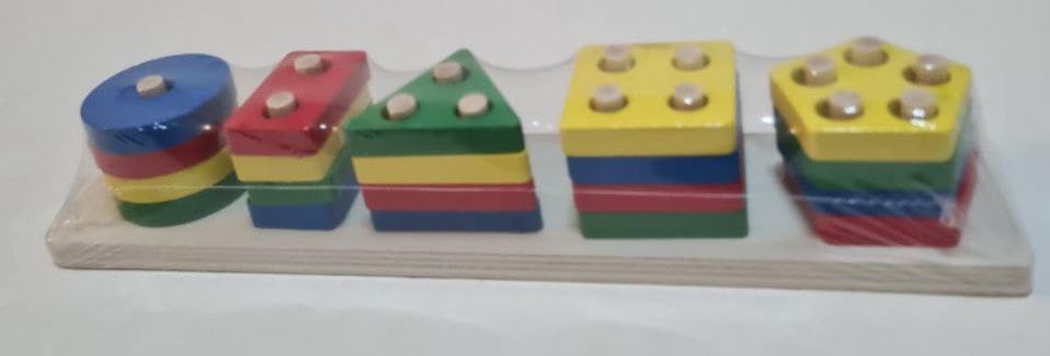 - لعبة بأشكال خشبية 5 أشكال متعددة الألوان ذات جودة عالية