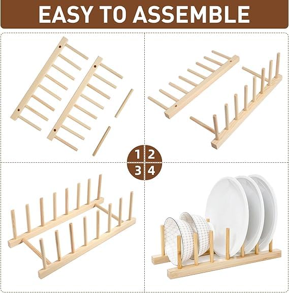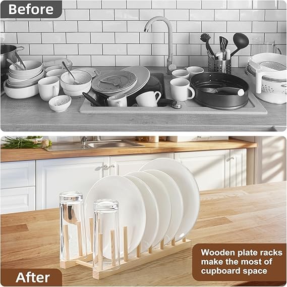 Generic - رف خشبي - حل تخزين المطبخ الأنيق لتجفيف الاطباق وتنظيم الاكواب والاكسسوارات، مثالي للمنزل او المقاهي الاحترافية، تصميم سهل الاستخدام. (قطعتين)