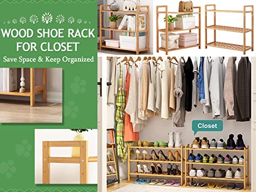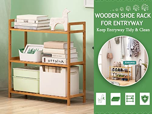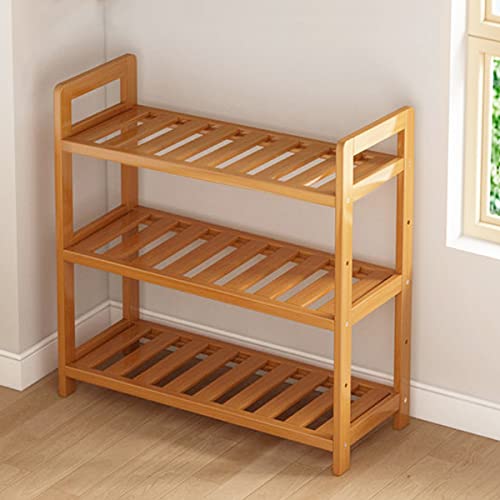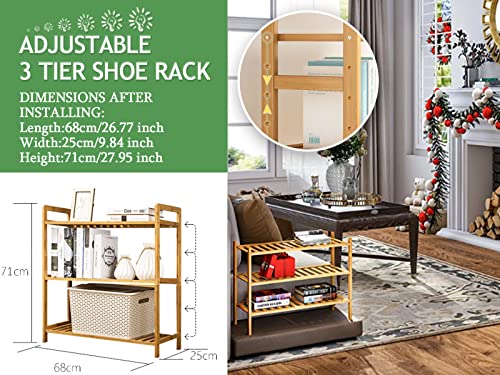 ZHIJXFAVO - رف أحذية خشبي للخزانة، من 3 طبقات من الخشب والخيزران، منظم لتخزين الأحذية للمدخل أو الحمام، سهل التركيب ويوفر المساحة، قابل للتعديل لاستيعاب 16 زوجًا من الأحذية العادية والطويلة، العرض: 69 سم