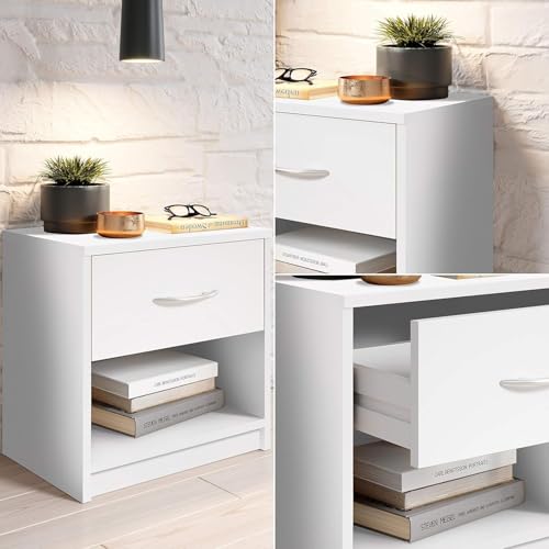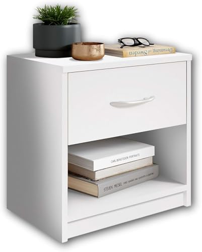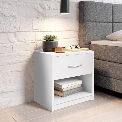 Generic - طاولة جانبية خشبية بدرج واحد، تصميم خزانة بسيط مناسبة لاي سرير وغرفة نوم بلمسة نهائية بيضاء نظيفة، منضدة سرير صغيرة الحجم بعرض 39 × عمق 28 × ارتفاع 41 سم