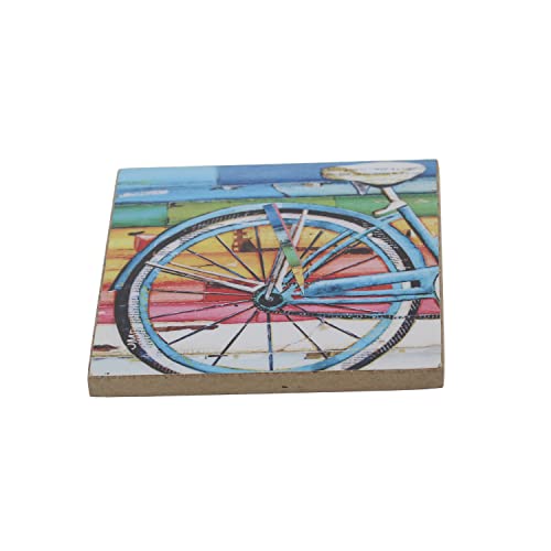 Generic - قواعد اكواب مربعة خشبية بتصميم دراجة لطقم مجات من 3 قطع - متعدد الالوان