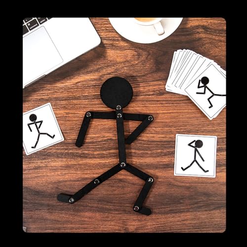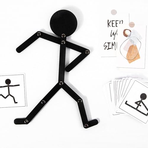 Gonetre - لعبة عصا خشبية مع اطراف متحركة، لعبة بازل خشبية تعليمية للتعلم الابداعي لمرحلة ما قبل المدرسة والفصول الدراسية، تتضمن 10 بطاقات (لون اسود)