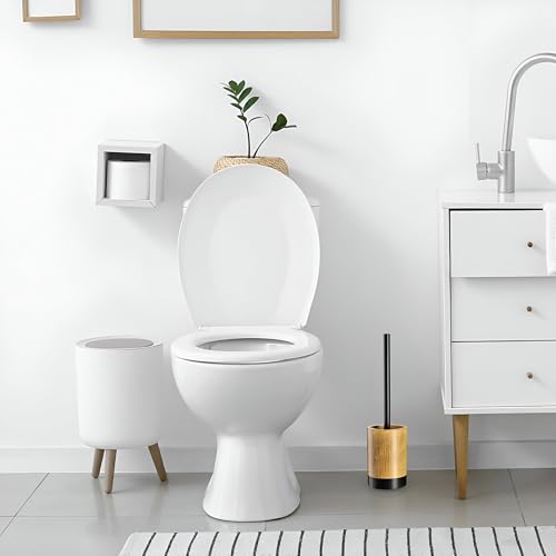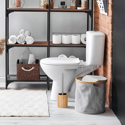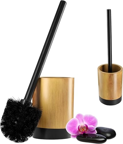 Generic - فرشاة مرحاض بتصميم خشبي - مقبض من الخيزران مع مقبض قابل للازالة، فرشاة مرحاض متينة للحمام وحمام الضيوف