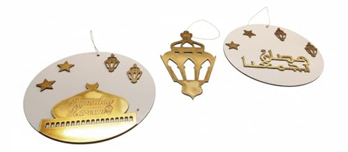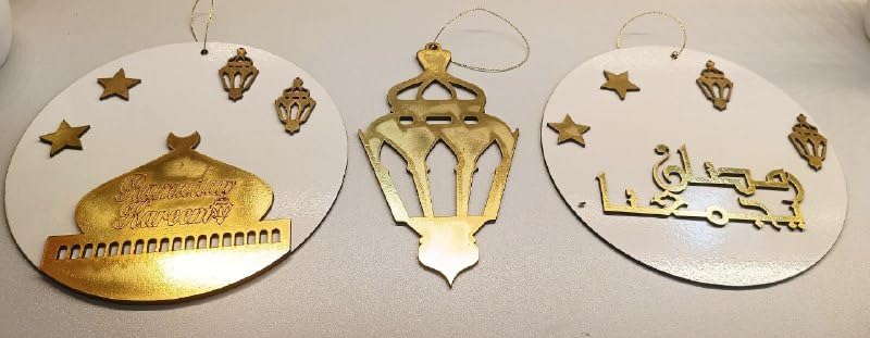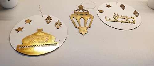 Generic - طقم تارات خشب مع فانوس ديكور 3 قطع – تصميم رمضاني عملي للعرض والتقديم (عدد 2 طقم)