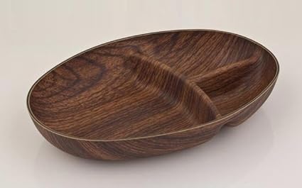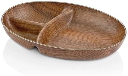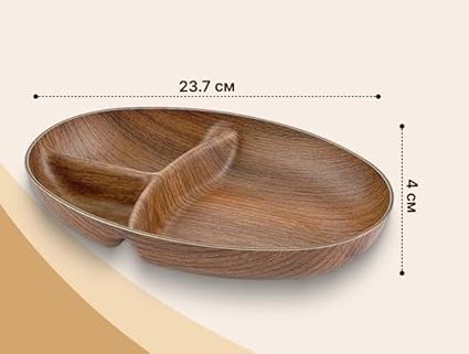 Generic - صحن خشبي بيضاوي الشكل بثلاث أجزاء – مقاوم للكسر
