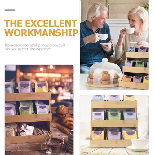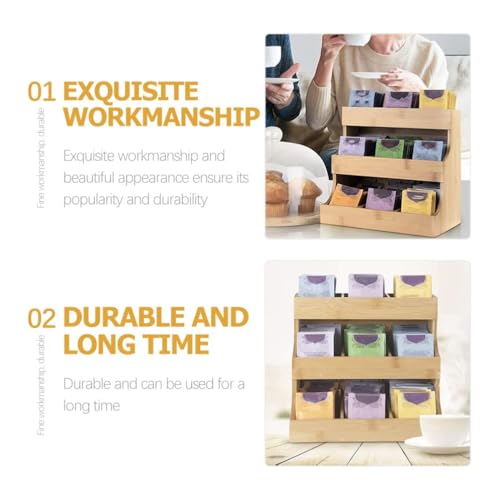 NALACAL - حامل اكياس شاي خشبي، منظم صندوق شاي من 3 طبقات، خشب صلب طبيعي، منظم اكياس الشاي لتخزين اكياس الشاي وتوابل السكر والقهوة والسكر