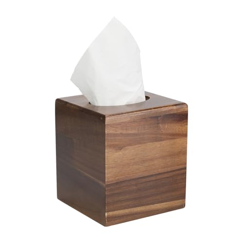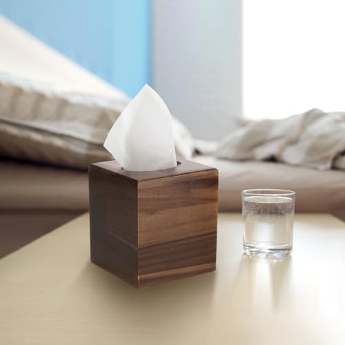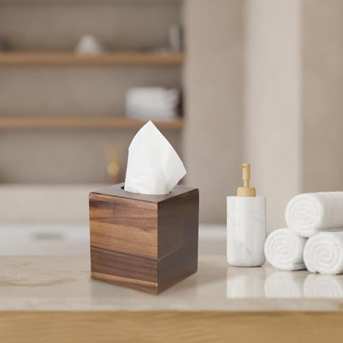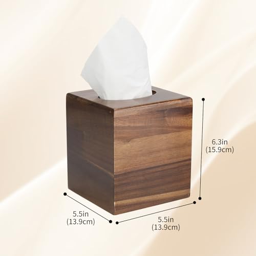 - تصميم فاخر: حامل علبة مناديل خشبي بني داكن مصنوع بشكل جميل بلمسة نهائية ناعمة، مثالي لحمل علب مناديل الوجه المربعة القياسية