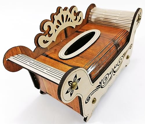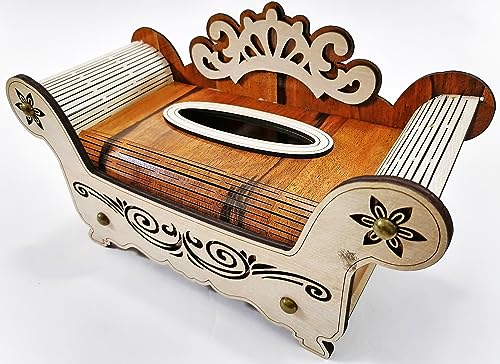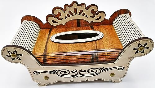 Generic - علبة مناديل خشبية بلون بني غامق مع علبة مناديل خشبية بلون بيج فاتح على شكل اريكة