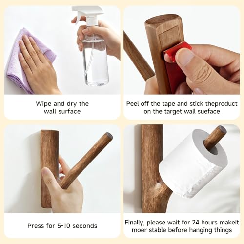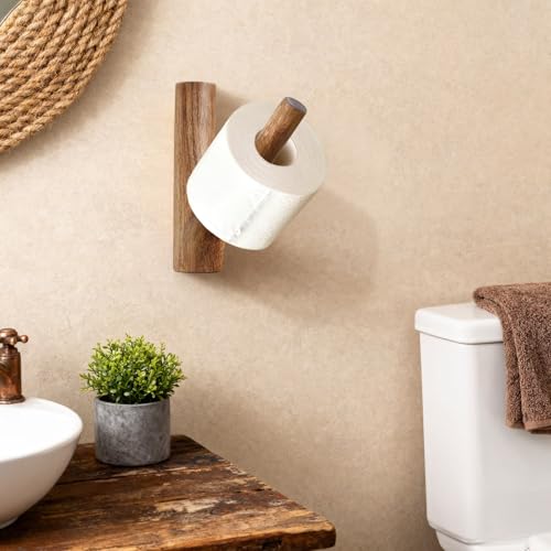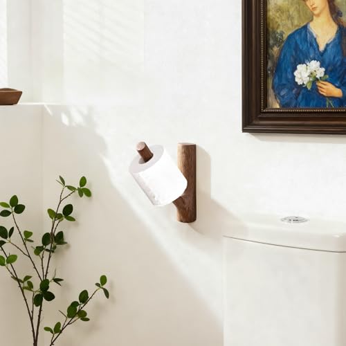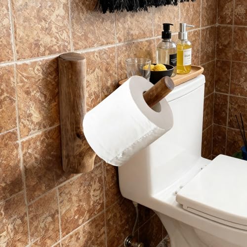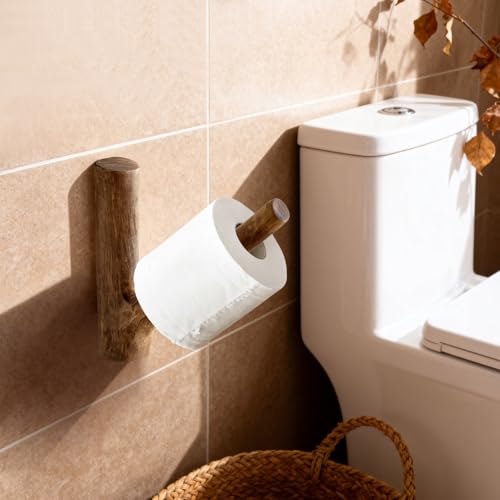 Voiolfolke - حامل ورق تواليت خشبي - لا يتطلب ثقب، حامل مناديل حمام ذاتي اللصق، حامل ورق تواليت خشبي صلب يثبت على الحائط، ديكور طبيعي بسيط عصري لنمط بيت المزرعة