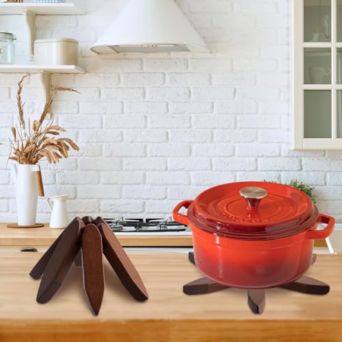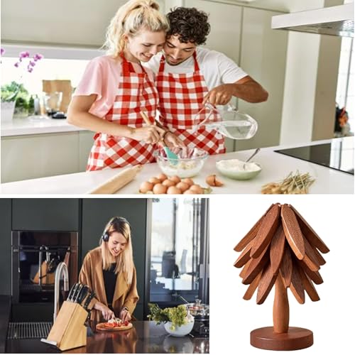 ZUSKYZU - قواعد اكواب خشبية على شكل شجرة، مجموعة ركائز للاطباق الساخنة، قاعدة اكواب للاطباق الساخنة على شكل شجرة قابلة للطي للمطعم، 3 حوامل خشبية + 1 حامل