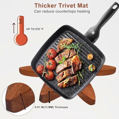 - إكسسوارات مطبخ مزخرفة جميلة: يتميز حامل الشجرة بسطح أملس ورقيق. كل وسادة ساخنة مصنوعة يدويًا بعناية ومنحوتة ومصقولة بشكل مثالي، مما يجعلها ليست مجرد ملحق مطبخ ولكن أيضًا ديكور منزلي مبتكر للمطبخ.