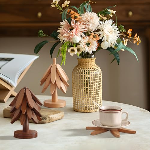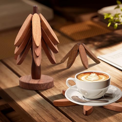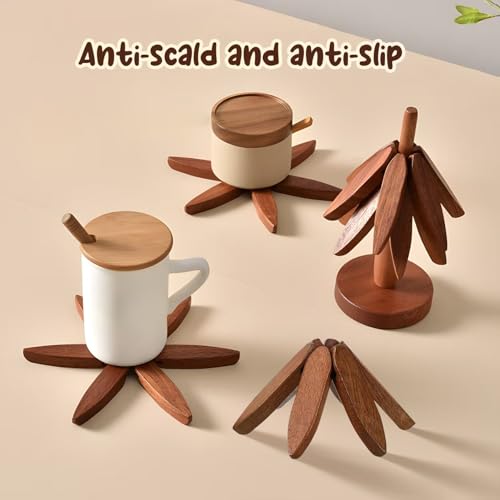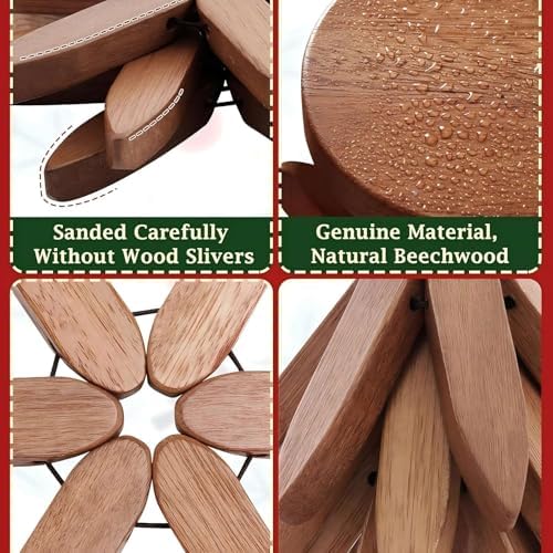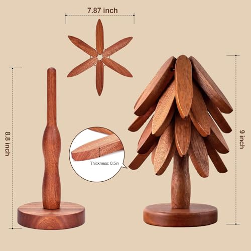 - [تصميم متعدد الاستخدامات] يتضمن هذا الطقم الخشبي المصنوع يدوياً حاملاً للأواني على شكل شجرة وأربع قواعد على شكل زهور لحماية سطح الطاولة من الأطباق الساخنة.