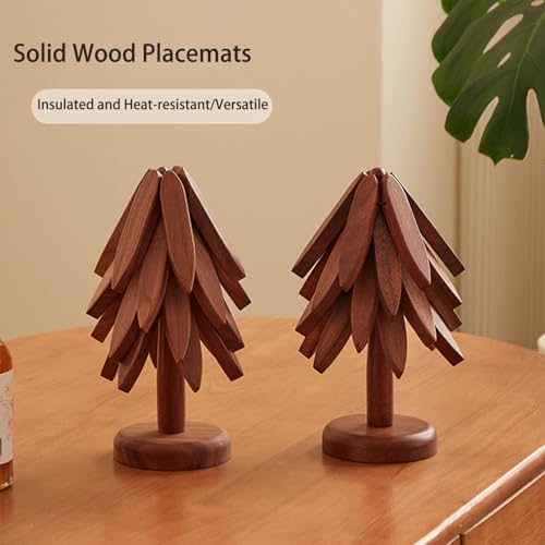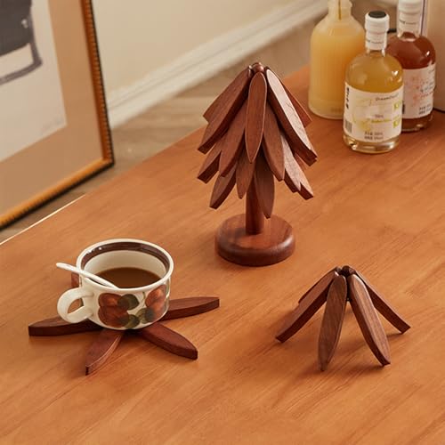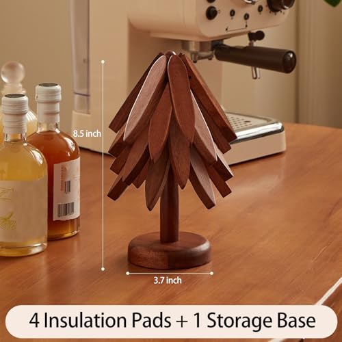 coutinfly - حوامل خشبية للاطباق الساخنة، مجموعة حوامل على شكل شجرة، 4 قطع من الركائز للاطباق الساخنة، 4 قطع من الركائز الخشبية وحامل واحد مخزن مثل شجرة لطيفة