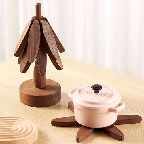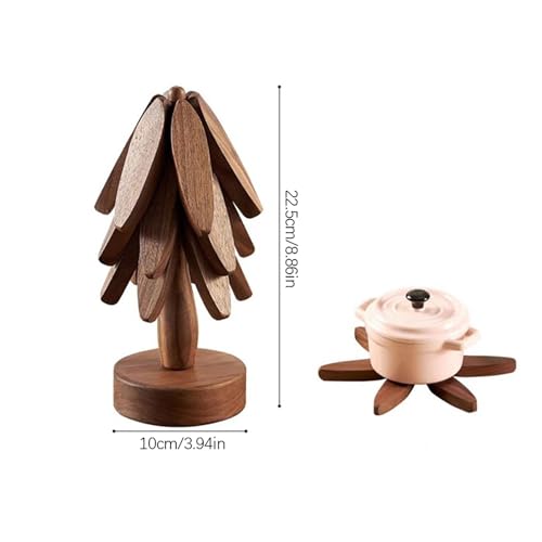 AIGOHOM - قاعدة أكواب عازلة من الخشب مضادة للانزلاق وقابلة للطي بنمط شجرة مع حامل 3 قواعد للأطباق الساخنة والبولات وأوعية الصوص، لون خشب الجوز