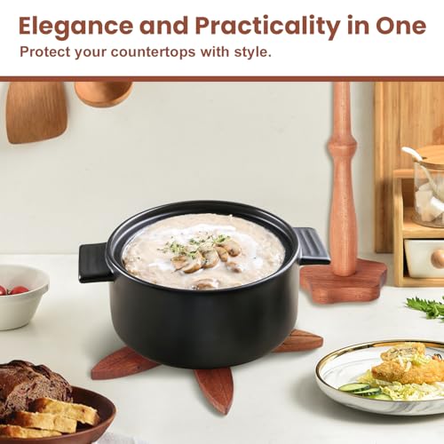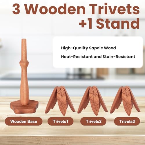 - استخدام مقاوم للحرارة: تتضمن هذه المجموعة من الملحقات الخشبية ثلاثة ركائز قابلة للتمدد ثلاثية الأرجل مقاومة للحرارة. عند توسيعها، يبلغ ارتفاع كل بساط 0.5 انش وقطره 7.8 انش. حوامل الأطباق الساخنة مناسبة لجميع أحجام أواني الطهي والأواني والأطباق، مما يمنع الأواني الساخنة من ملامسة السطح مباشرة. يمكنها تحمل درجات الحرارة العالية لضمان الاستخدام الآمن.