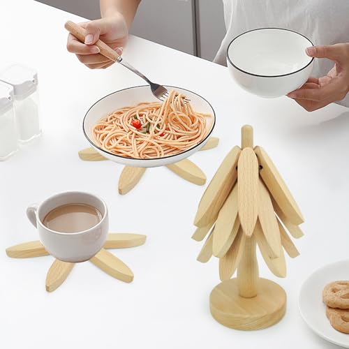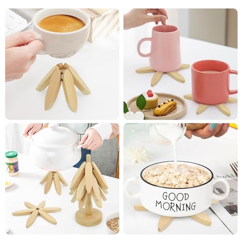 - 【تصميم مبتكر】يتكون كل حامل خشبي للأطباق الساخنة من 6 قطع صغيرة من الخشب. قم بإزالة واحدة من الحامل وضعها مباشرة على الطاولة. لا حاجة إلى تسطيحها مسبقًا. التقط الجهاز مباشرة من الأعلى وقم بخفضه ببطء. بسبب تأثير الجاذبية، ستفتح تلقائيًا وتؤدي وظيفتها الصحيحة. كل استخدام هو تجربة مثيرة للاهتمام