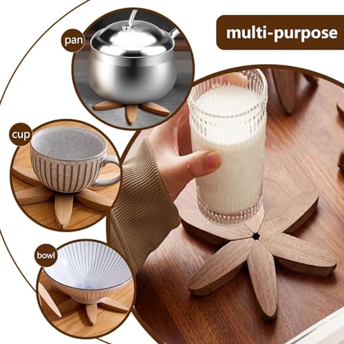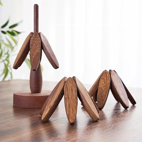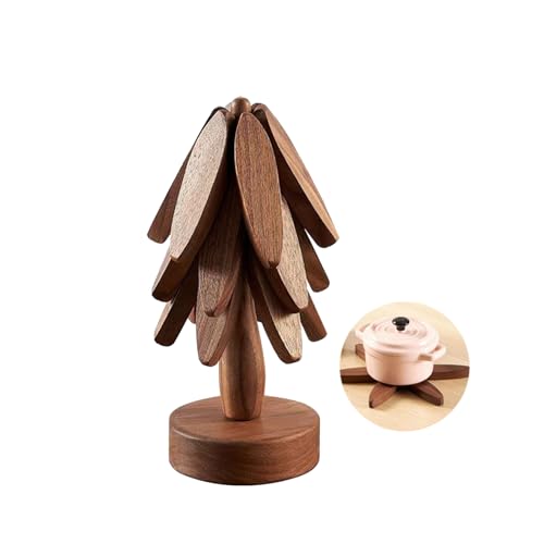 ZELLOXY - قواعد خشبية للاطباق الساخنة على شكل شجرة، مفرش طاولة مقاوم للحرارة من خشب الجوز الاسود، مجموعة وسادات الركائز، حوامل اواني لابريق الشاي لسطح طاولة المطبخ (خشب الجوز، 3 طبقات)