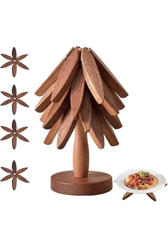 ADDSSFUBAO - حوامل خشبية للأطباق الساخنة، مجموعة حوامل على شكل شجرة، 4 أطباق خشبية ساخنة + حامل واحد، أطباق مطبخ خشبية طبيعية قابلة للطي للحلل والمقالي والأطباق العميقة وغلايات الشاي وحوامل الفوندو (عين الجمل)