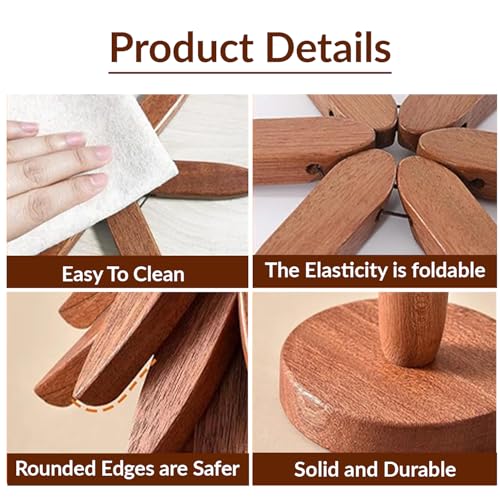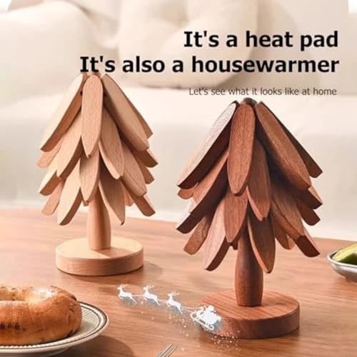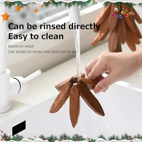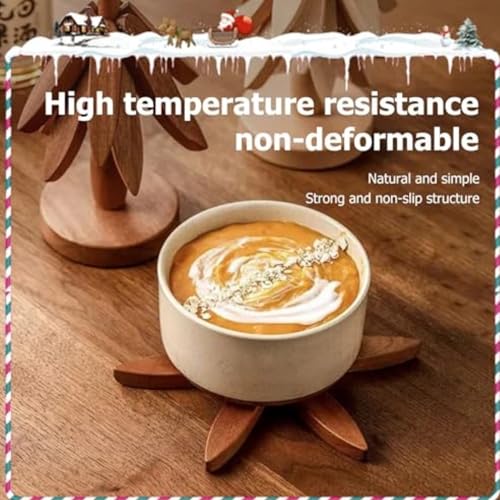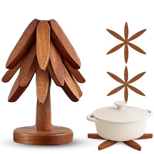 SS BEST DEALS - مجموعة حوامل خشبية للاطباق الساخنة، مجموعة حوامل على شكل شجرة، قاعدة اكواب ساخنة قابلة للطي على شكل شجرة للمطاعم، 4 حوامل خشبية + 1 حامل (خشب الجوز) (بني داكن)