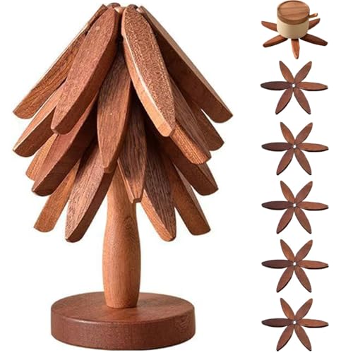 Liecho - حوامل خشبية للاطباق الساخنة، مجموعة حوامل على شكل شجرة من خشب سبيلي للاواني الساخنة والمقالي (5 طبقات + حامل واحد)