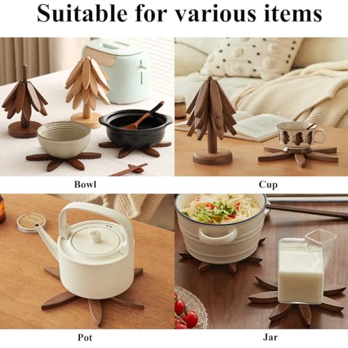 - بساط متعدد الوظائف: دعامات خشبية للأطباق الساخنة يمكن فتحها 7.8 انش، يمكنها حمل الأكواب والأوعية والأطباق وأباريق الشاي والمقالي والأواني الساخنة وما إلى ذلك. مناسبة لأسطح الطاولات ذات الأنسجة المختلفة مثل الزجاج والرخام، ويمكن وضعها في أماكن مختلفة مثل المطابخ وغرف المعيشة وغرف الطعام