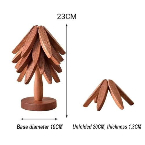 Kasardy - حوامل خشبية للاطباق الساخنة، مجموعة حوامل على شكل شجرة، حوامل للاطباق الساخنة - 4 حوامل خشبية + 1 حامل مخزن مثل شجرة الكريسماس، حوامل خشبية للمطبخ قابلة للطي (4 قطع - خشب الجوز)