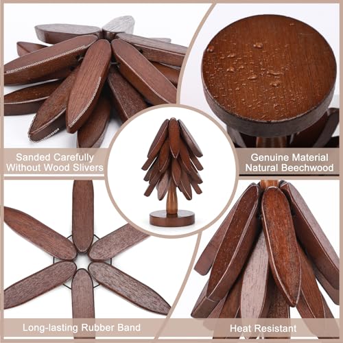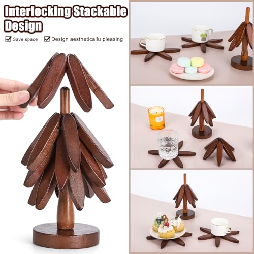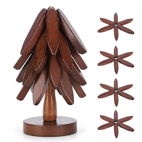 Ailanxin - حوامل خشبية للاطباق الساخنة، مجموعة حوامل على شكل شجرة، قواعد اكواب خشبية مع حامل 4 حوامل خشبية + 1 حامل، حوامل خشبية قابلة للطي للمطبخ للاواني الساخنة والمقالي الساخنة لسطح الطاولة