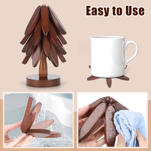 - 【تصميم ذكي】تصميم الشجرة الفريد ليس جميلًا فحسب، كل ركيزة شجرة للأطباق الساخنة تحتوي على ستة مكعبات خشبية صغيرة، أخرج واحدة من الحامل وضعها مباشرة على سطح الطاولة، احمل الجهاز مباشرة من الأعلى، ضعه ببطء، بسبب الجاذبية، سيفتح تلقائيًا ويلعب دوره الصحيح. قواعد أكواب خشبية قابلة للطي للتخزين وتوفير المساحة.