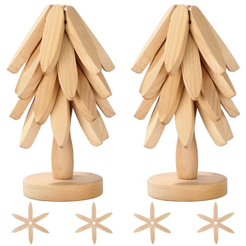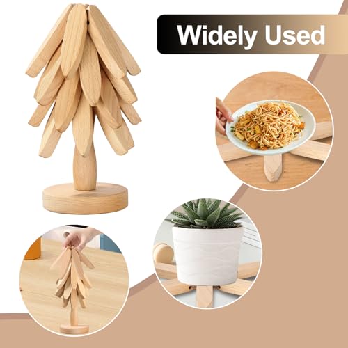 Kinbrace - حوامل خشبية للاطباق الساخنة، مجموعة حوامل على شكل شجرة، 4 حوامل خشبية + 1 حامل مخزن مثل شجرة الكريسماس، ركائز من خشب الزان للاواني الساخنة والمقالي والوعاء وابريق الشاي، عبوة من قطعتين