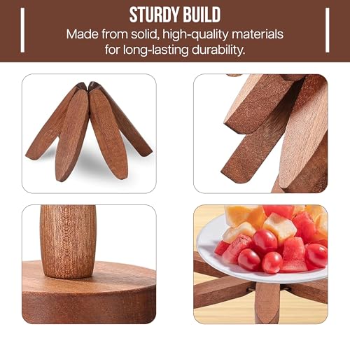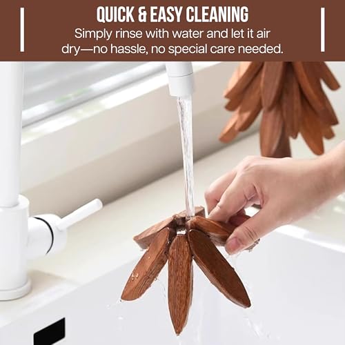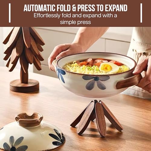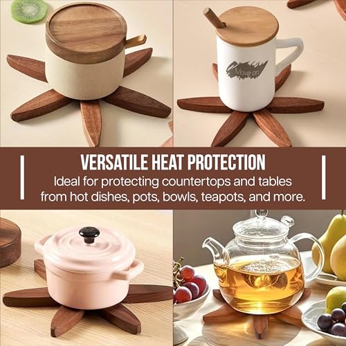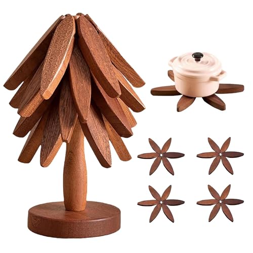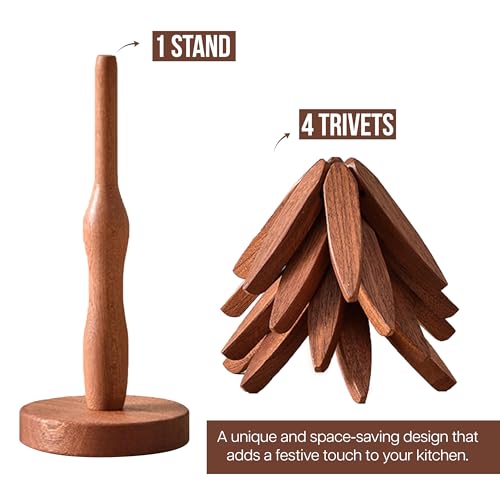 KichNest - حوامل خشبية للاطباق الساخنة - مجموعة حوامل على شكل شجرة مع حامل، مقاومة للحرارة للاواني والمقالي واباريق الشاي - تصميم موفر للمساحة قابل للتكديس، وسادات ساخنة للمطبخ - مجموعة من 4 قطع (خشب الجوز)