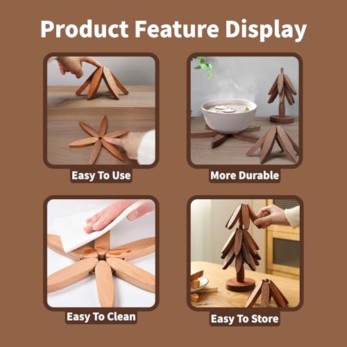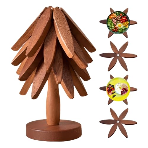 - 【مجموعة حوامل على شكل شجرة】تبدو مثل شجرة الكريسماس، تتضمن حوامل الشجرة هذه للأطباق الساخنة 4 ركائز خشبية ودعامة، مصممة لحماية أسطح الطاولات وأسطح الطاولات من أضرار الحرارة عند تقديم الأطباق الساخنة