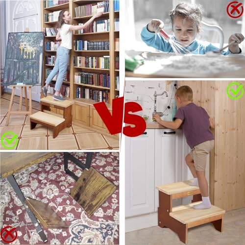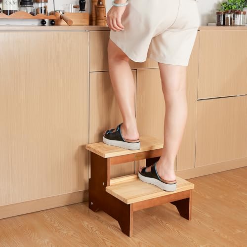 HouseJoy - مقعد خشبي بدرجتين للبالغين والأطفال