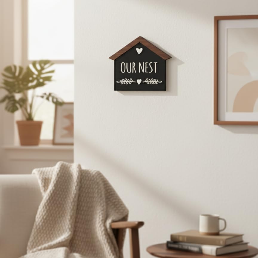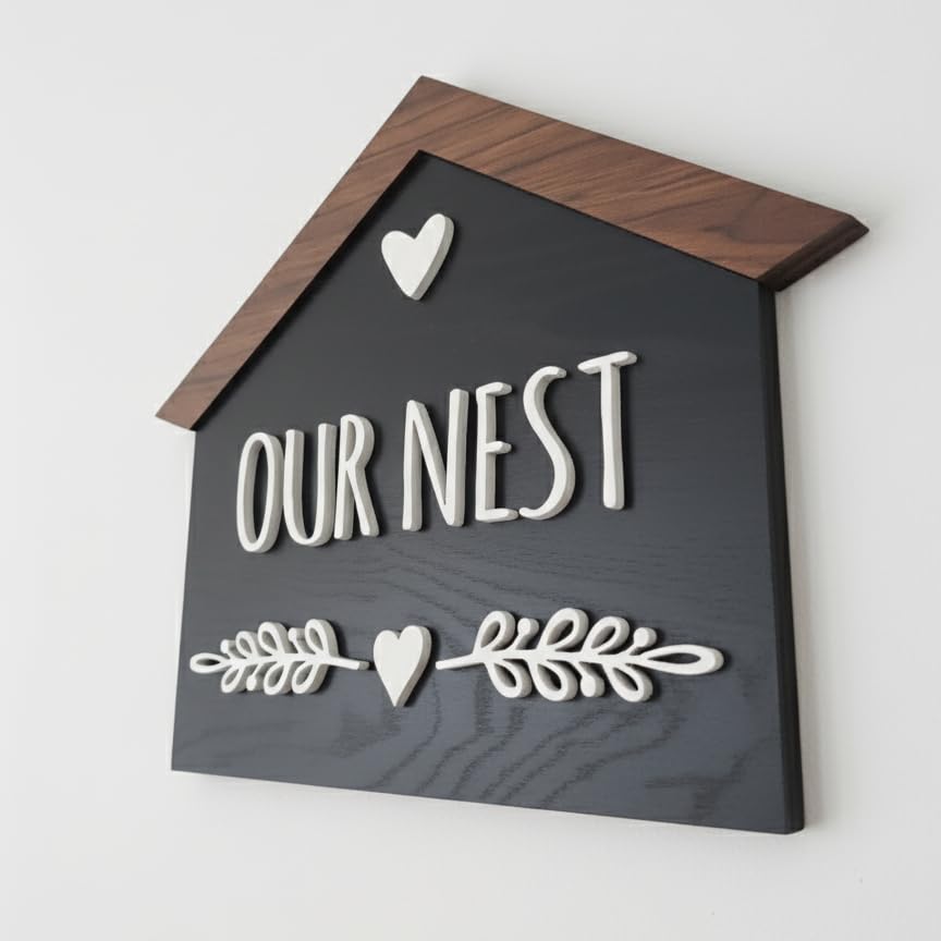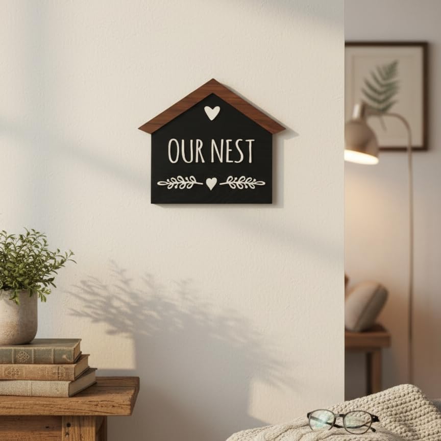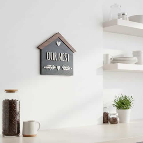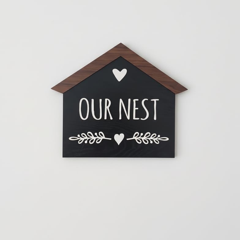 Generic - ديكور حائط خشبي مميز شكل بيت بعبارة Our Nest , تابلوه ديكور مجسم, بمقاس 32x28 سم مصنوع من خشب MDF أسباني فاخر بسمك 8 ملم ليضفي الي اي ركن من منزلك الجمال و الاناقة