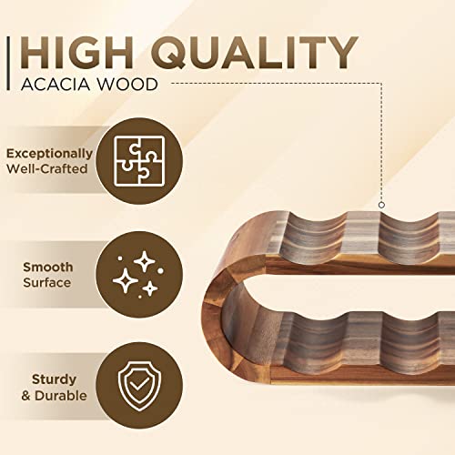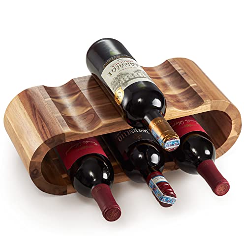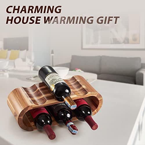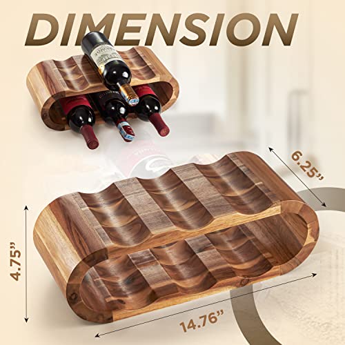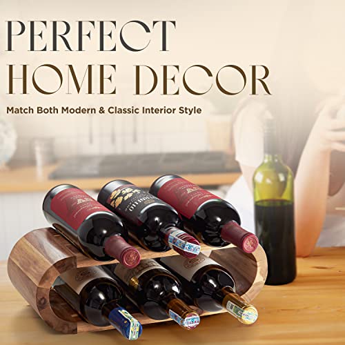 BLUEWEST - رفوف خشبية لسطح الطاولة، رف 6 زجاجات نبيذ، حامل زجاجات نبيذ اكاسيا، تخزين قائم بذاته، منظم رف النبيذ، مثالي لديكور المنزل وهدايا المشروبات، لا حاجة للتجميع (عصري)