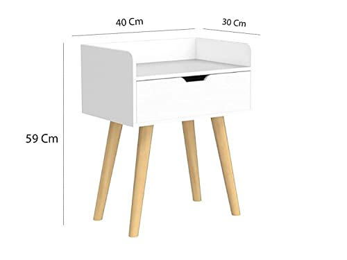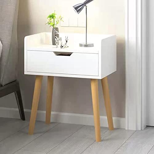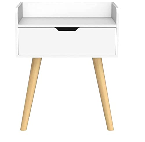 Wooden World - طاولة جانبية للأريكة من وودن ورلد خزانة بأدراج تخزين عصرية لغرفة المعيشة مع درج وأرجل خشبية صلبة بجانب السرير لغرف النوم وما إلى ذلك. أبيض