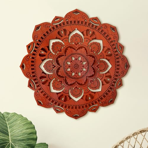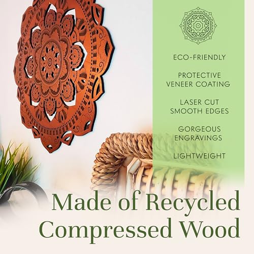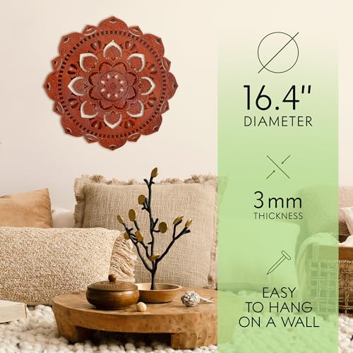 WoodfulArt - لوحة فنية معلقة على الحائط مقاس 16.4 انش من الخشب المعاد تدويره بتصميم ماندالا شاكرا واليوجا والتامل والمذبح الروحي البوهيمي وودفول ارت زهرة باور 110 متعدد الألوان