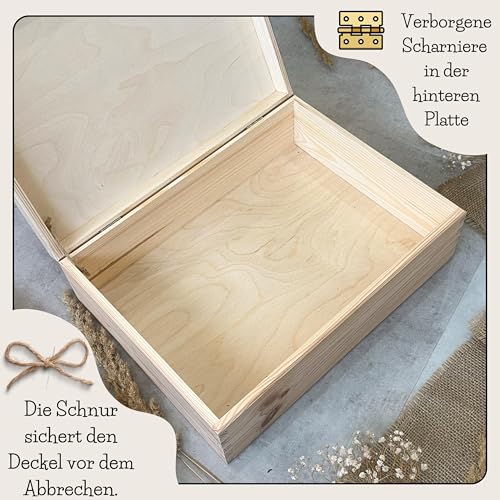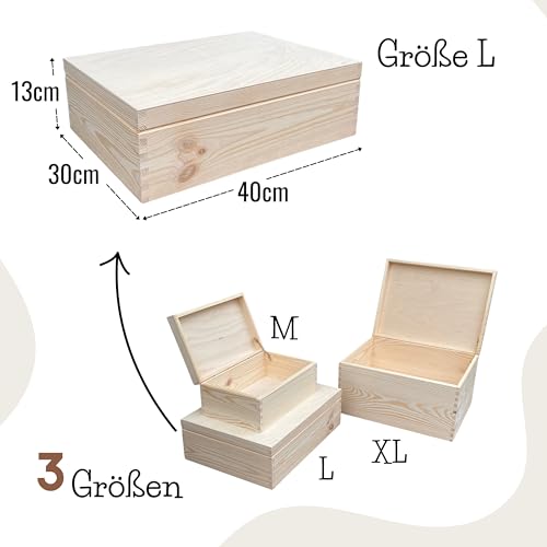 WoodGall - صندوق خشبي مع غطاء كبير 40 × 30 13 سم - تخزين في المنزل - من خشب الصنوبر الطبيعي للحرف اليدوية - العاب - فكرة لصندوق هدايا وود غال
