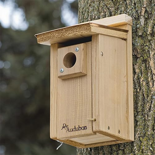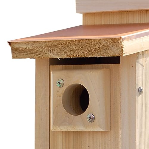 - بيت عصافير زرقاء من خشب الأرز الطبيعي مطابق للمواصفات العلمية لعلم الطيور ومزود بسقف علوي من النحاس