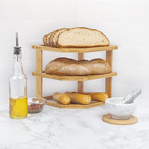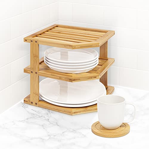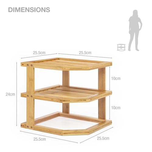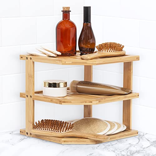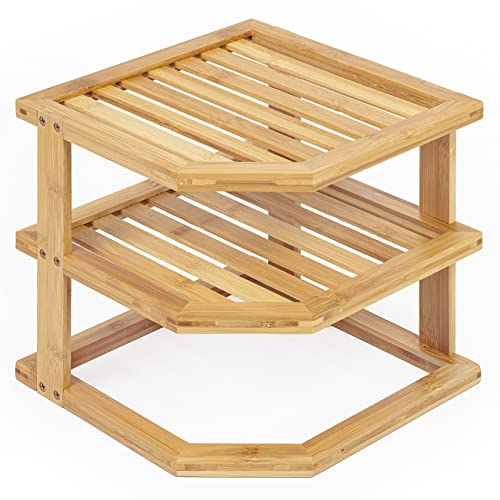 - يتميز بوحدة توفير المساحة المكونة من ثلاث طبقات من الخيزران، مما يسمح لك بإضافة مساحة أكبر إلى خزاناتك مع رف الزاوية ثلاثي الطبقات.
