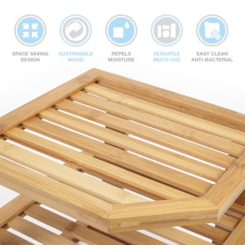 woodluv - وحدة تخزين مكونة من 3 طبقات الخيزران بنسبة 100% وودلوف موفرة للمساحة لتنظيم الخزانة خشب بني