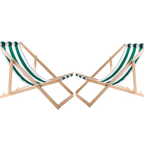 WOODOK - كرسي سطح قابل للطي من وودوك - كرسي حديقة قابل للطي حتى 120 كجم، كرسي استلقاء للتشمس مصنوع من خشب الزان بدون مساند للذراعين (2 × أبيض/أخضر)