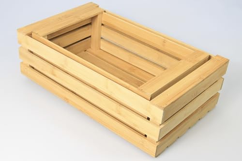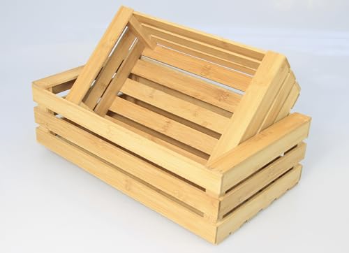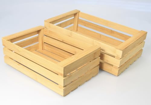 Woodquail - مجموعة من 2 قفص خيزران مع جوانب مضلعة لتنظيم سلة المطبخ المنزلية للكريسماس من وودكويل