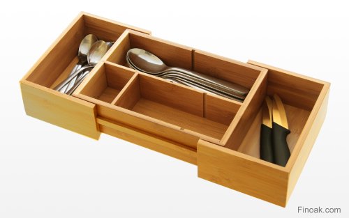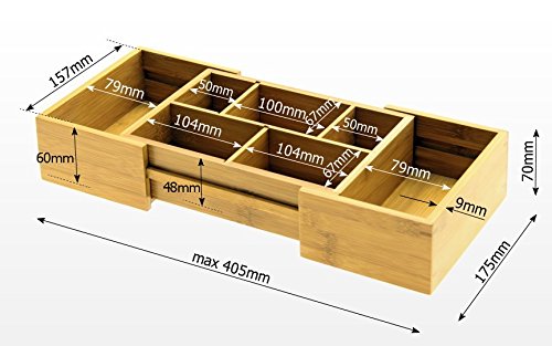 Woodquail - منظم ادراج صغير موفر للمساحة وقابل للتوسيع والتعديل من وودكويل، صينية ادوات المائدة، مصنوع من خشب الخيزران الطبيعي الصديق للبيئة