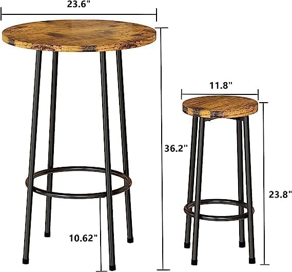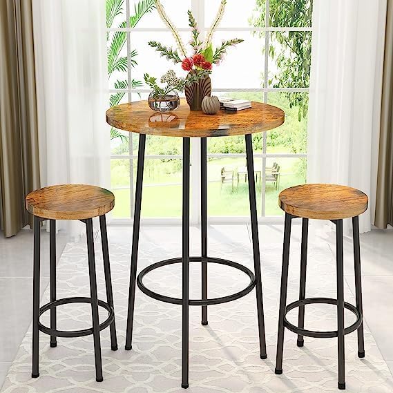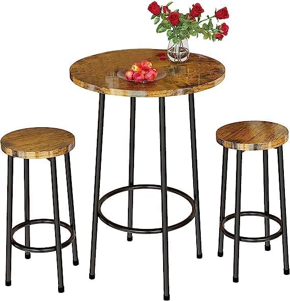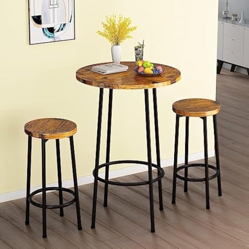woodx - طقم طاولة حانة من 3 قطع وودكس، بار مستديرة عصرية مع مقعدين، طعام بارتفاع بيسترو، مجموعة قطعتين للمساحات الصغيرة والطعام والمطبخ والمطعم وركن الافطار - بني ريفي