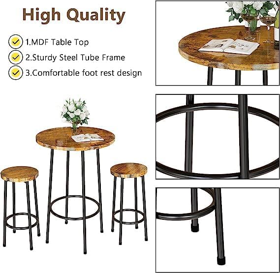 - 【مجموعة طاولة مناسبة】توفر مجموعة الطاولة والكراسي هذه طريقة مناسبة لمحبي الاستمتاع بمشروب لطيف مع الأصدقاء أو الاستمتاع بالقهوة بمفردهم. مع اللون البني والخلفية، تضفي طاولة الطعام الصغيرة هذه لشخصين جوًا مريحًا وملائمًا، وستكون حفلتك رائعة ومثيرة للإعجاب، بينما سيحررك وقتك بمفردك من إرهاق العمل.