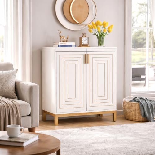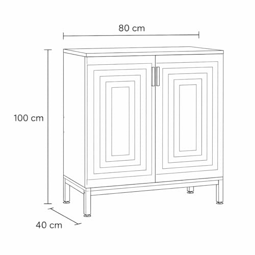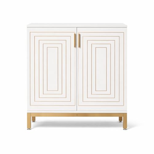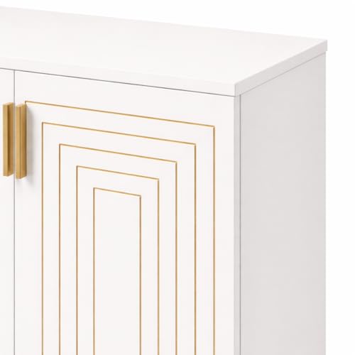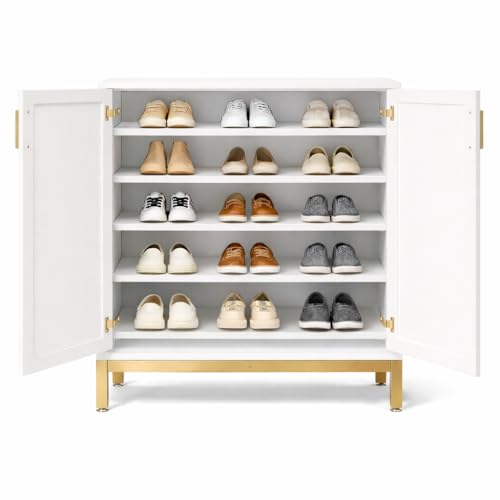 woodx - دولاب وخزانة تخزين أحذية حديث ببابين مع أرجل معدنية، تصميم لوحة هندسية وأرفف قابلة للتعديل وتشطيب خشب إم دي إف، منظم لمدخل الممر من وودكس (أبيض)