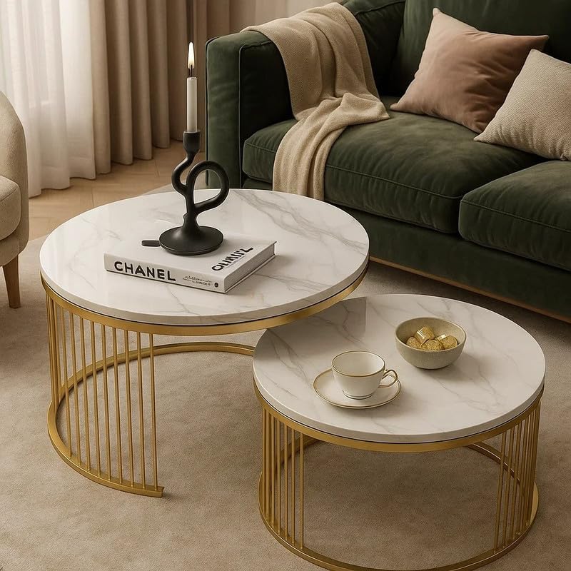 - 【طاولات قهوة لغرفة المعيشة】: رخام طبيعي وإطار معدني قوي. مواد صديقة للبيئة ومتينة بما يكفي لتخزين الأشياء. متوفر للاستخدام اليومي لفترة طويلة.