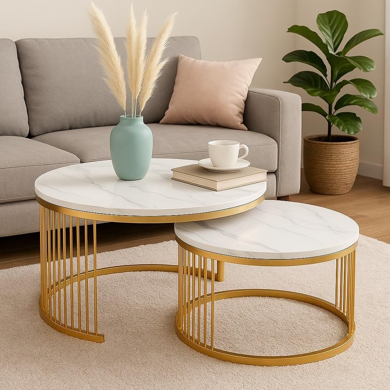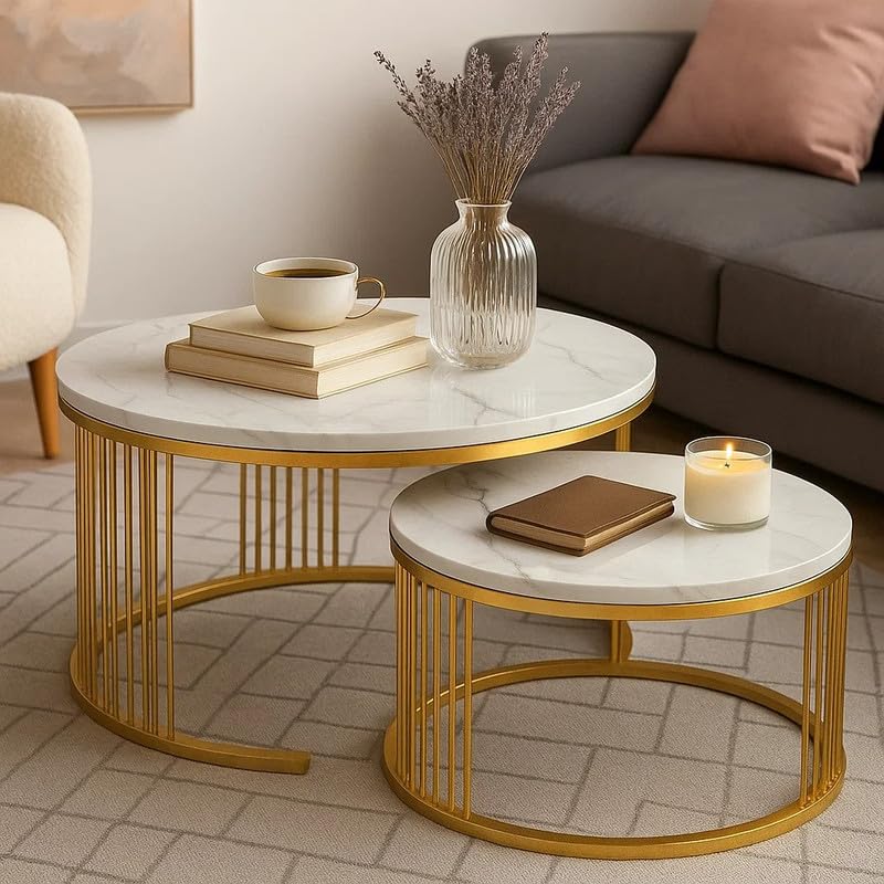 woodx - طاولات قهوة اوريوس متداخلة من وودكس - رخام صناعي واناقة ذهبية