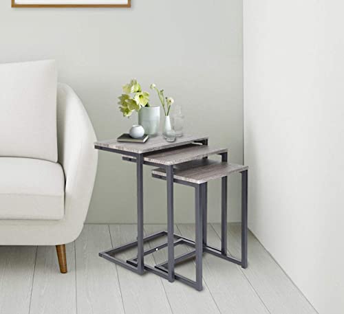 woodx - طقم ترابيزات جانبية متداخلة من وودكس، ديكور ريفي عصري، 3 قطع، متعدد الالوان