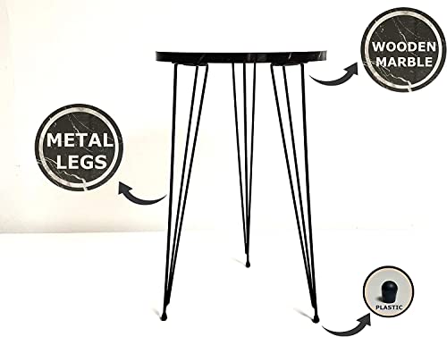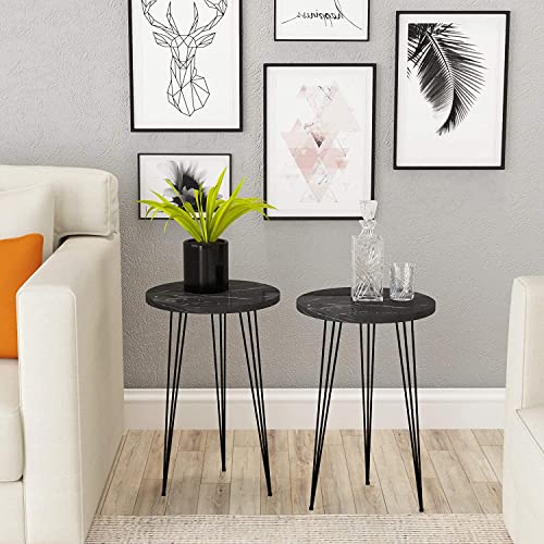 woodx - طاولة قهوة جانبية من الرخام الأسود مناسبة للكنبة والمساحات الصغيرة توضع بجانب السرير بأرجل معدن لغرفة النوم وغرفة المعيشة والمكتب والبلكونة من وودكس، مجموعة من قطعتين